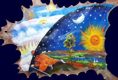 | Between the Worlds by Cilla Conway; painted on vellum |